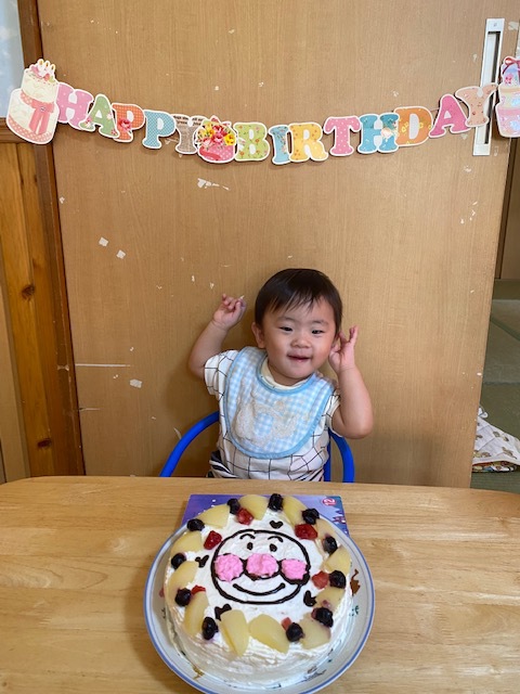 1歳のお友達は初めてのお誕生会での主役席にびっくりしていましたが、笑顔で参加してくれました♪