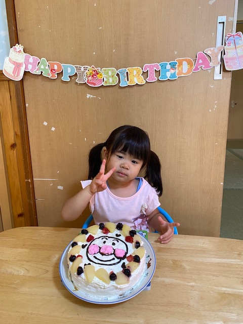 誕生会のインタビューでは上手に3歳!と指で必死に3をしてくれました!(^^)!