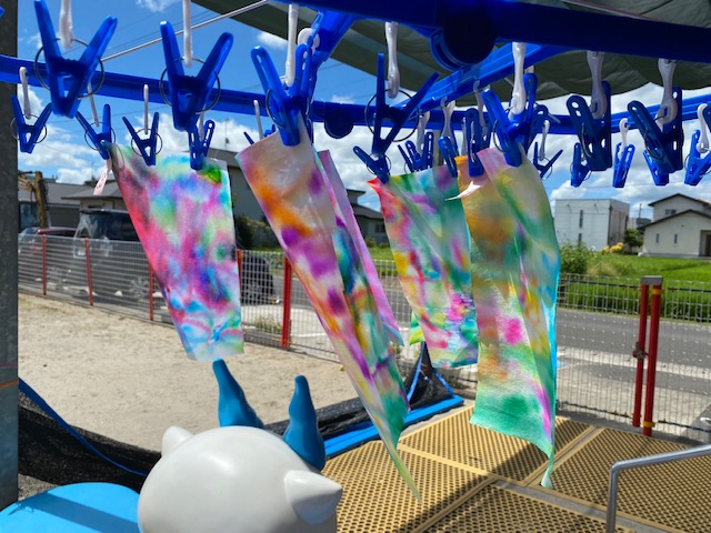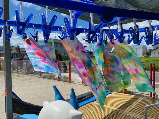 カラフルな染紙を干していると、風に吹かれてとっても綺麗☆