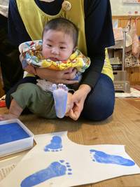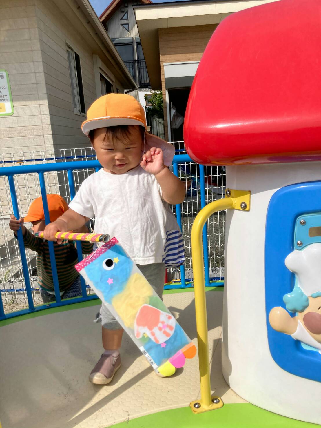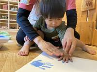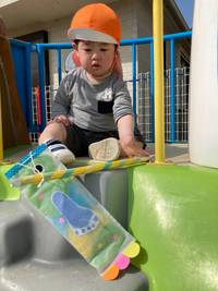 今年は0歳児さん・1歳児さんは「トレーシングペーパー」2歳児さんは「傘袋」を使ってのこいのぼり製作!